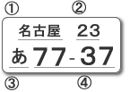 ① 使用の本拠の位置の陸運支局又は自動車検査登録事務所を表示する文字